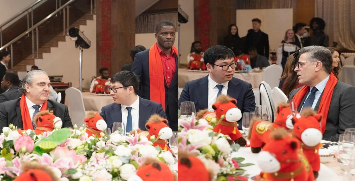 晚9时,到场的各国大使共同点亮背投大屏,齐呼“马年大吉,马到成功”,五洲祝福在此刻同频共振。