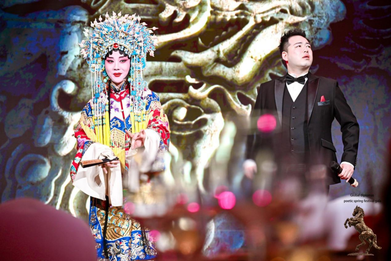 是夜,舞台之上东西交辉。歌剧《今夜无人入眠》与京剧《贵妃醉酒》同台呈现,歌剧演员与京剧演员一唱一和,虽语言各异、声腔有别,却在人类共通的情感表达中寻得共鸣。