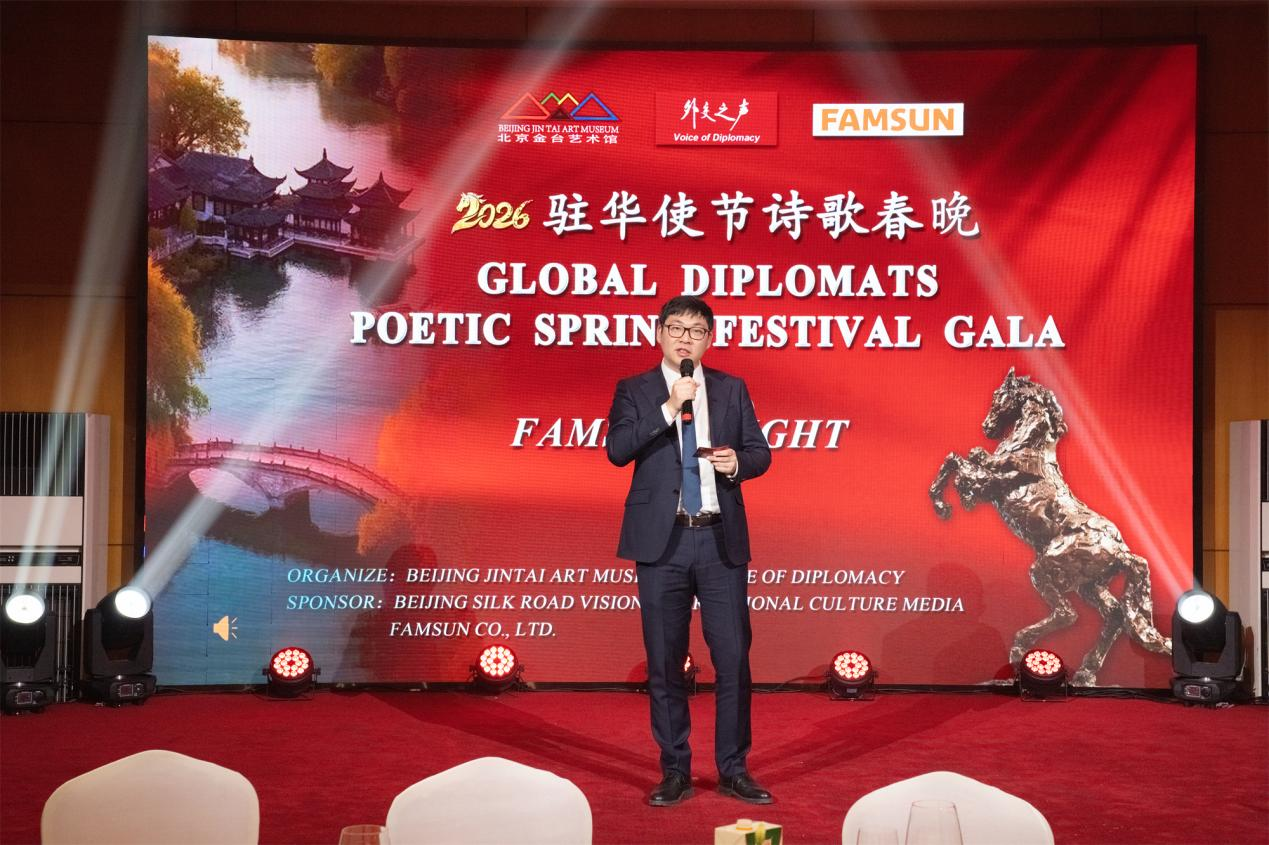 2月12日,农历丙午年前夕,由江苏丰尚智能科技有限公司携手“外交之声”、北京金台艺术馆联合举办的“2026驻华使节诗歌春晚·丰尚之夜”活动在京圆满落幕。来自阿根廷、巴基斯坦、玻利维亚、厄瓜多尔、埃塞俄比亚、缅甸、乌克兰、意大利、赞比亚等55个国家的上百位驻华使节、国际组织代表及文化界人士等齐聚一堂,以诗为媒,共迎马年新春。这场融汇东西方文明对话的高规格文化盛宴,因丰尚的深度参与而更显国际视野与产业温度。